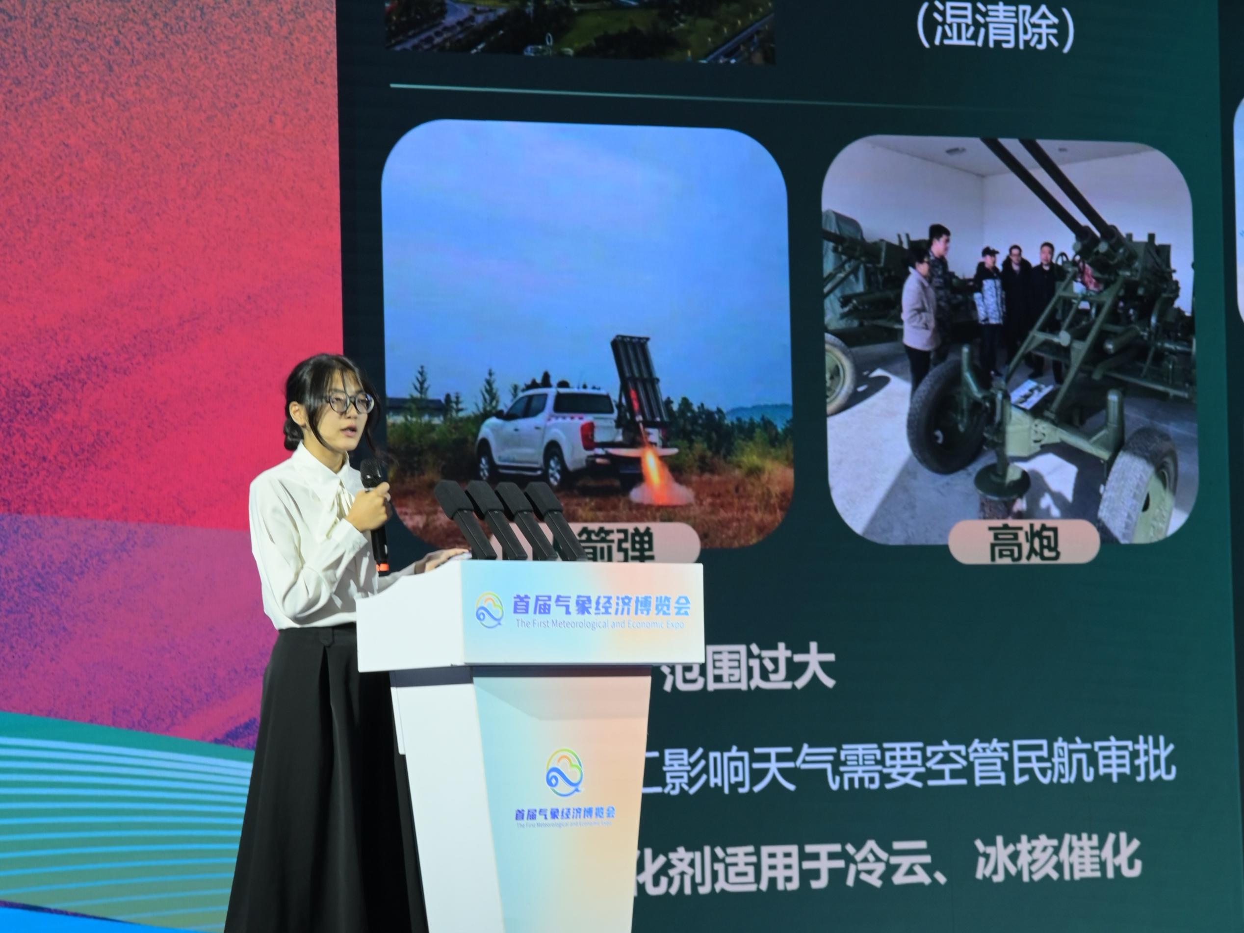 在高校交流专场中,“云控先锋”项目负责人吴昊副教授与“智控云雨”项目负责人何灵杙同学分别作主题报告。报告聚焦新一代科学大装置云室及人工增雨服务等核心实验成果及其应用场景,充分展现了我院师生的科研实力与创新实践能力,获得与会专家和高校代表的高度评价。