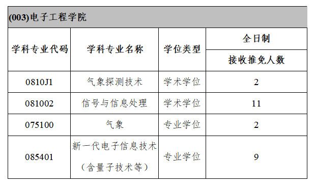 一、招生专业及拟接收推免生人数