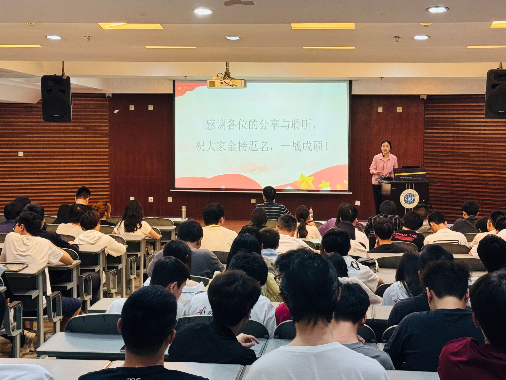 最后,学院党委书记缪燕平针对当前同学们的考研情况做了总结发言。她鼓励同学们坚定信心,合理规划复习时间,保持良好的学习状态和积极心态,并表示学院将全力为同学们提供支持和帮助,助力大家实现考研梦想。