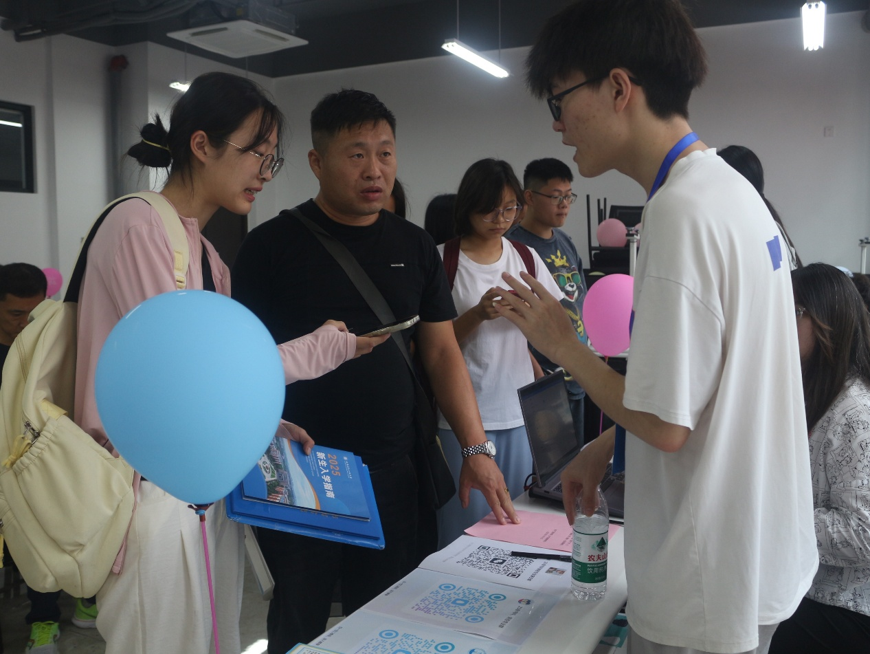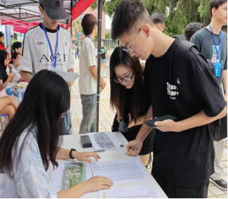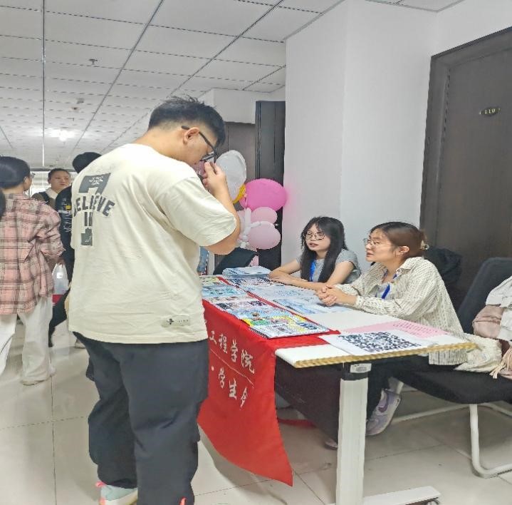报到现场,志愿者们热情引导,协助完成身份核验、注册认证、物资领取等报到流程。报到点内设有“党员先锋岗”,充分发挥学生党员的先锋模范作用,为新生提供热情周到的服务;同时,团委学生会招新点也同步开展宣传与报名工作,吸引众多新生积极参与。