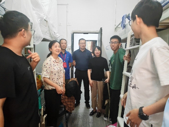 为帮助新生尽快适应大学生活,下午5点,学院党委书记缪燕平、副书记杨勇、副院长史朝、学生科科长阮丽娜以及新生辅导员深入新生宿舍,与同学们面对面交流。