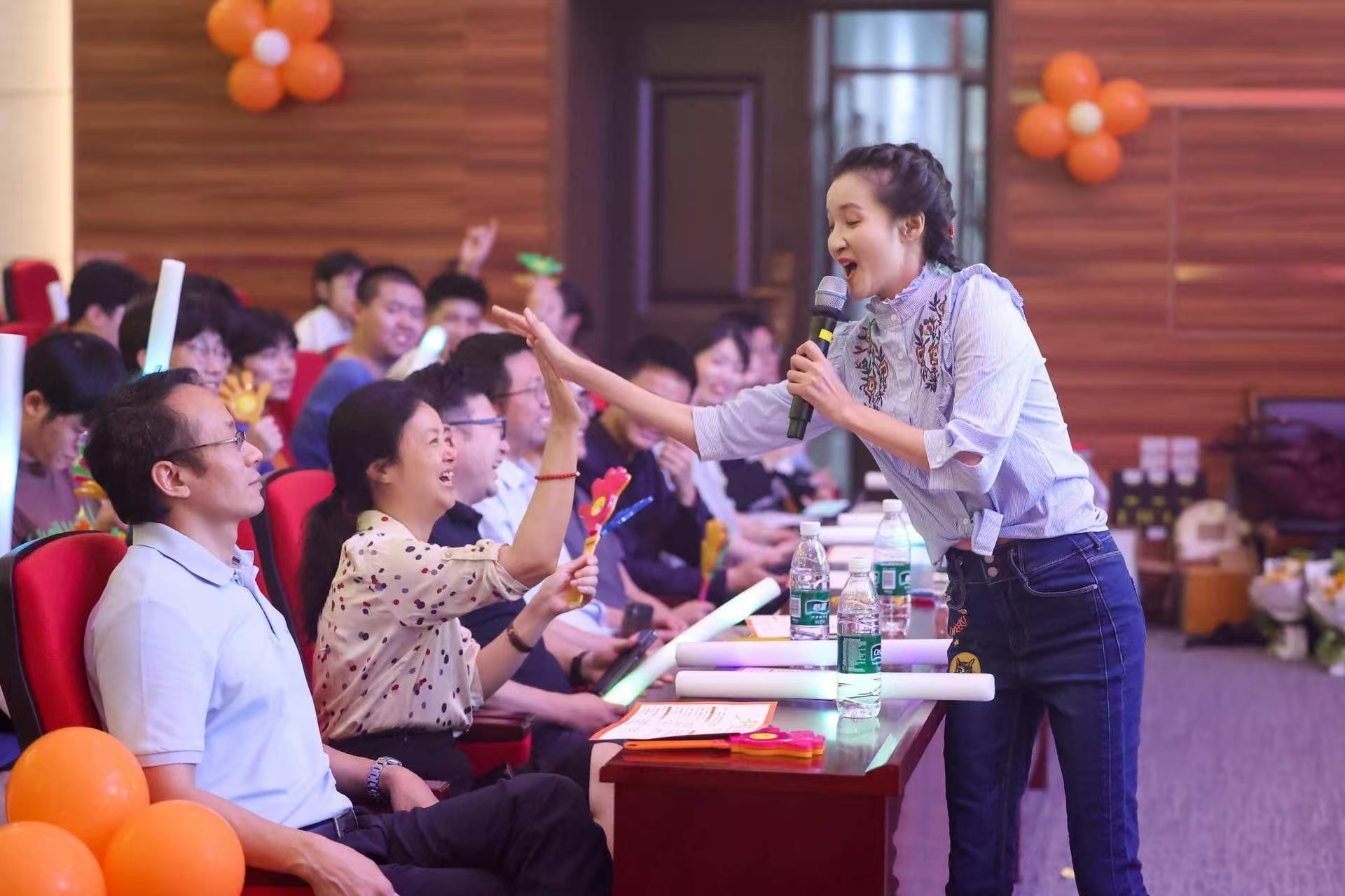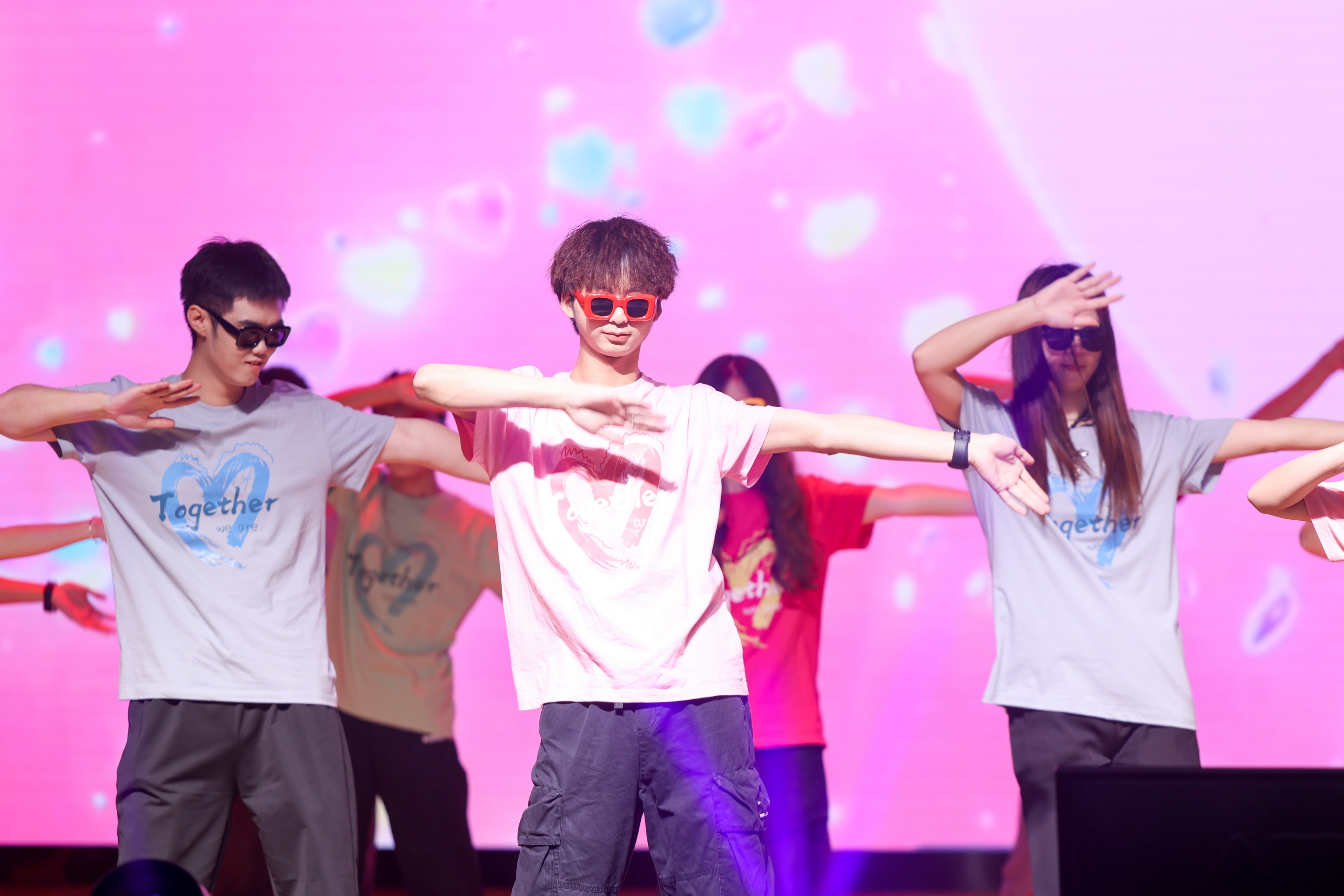 第一篇章“电子情深・初相遇”中 ,团委、学生会全体部长带来活力四射的舞蹈《可爱摆》;紧接着,院长张福贵登台对即将离校的毕业生寄语,表达对毕业生的美好祝福与期望,勉励大家在新征程中继续发光发热;随后国家奖学金表彰环节,国奖获奖代表张媚兰分享自己的学习心得和成长故事,激励着在场的每一位学子;学院领导合唱的《朋友》,唱出了师生间深厚的情谊;辅导员老师们带来的《三句半》,以幽默诙谐的语言,串联校园生活的点点滴滴。