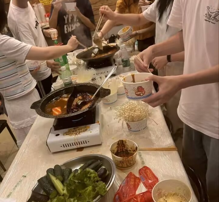 厨艺展示:烧烤架上烟熏火燎,火锅里翻滚着各种美味,我们的大厨们各显神通。